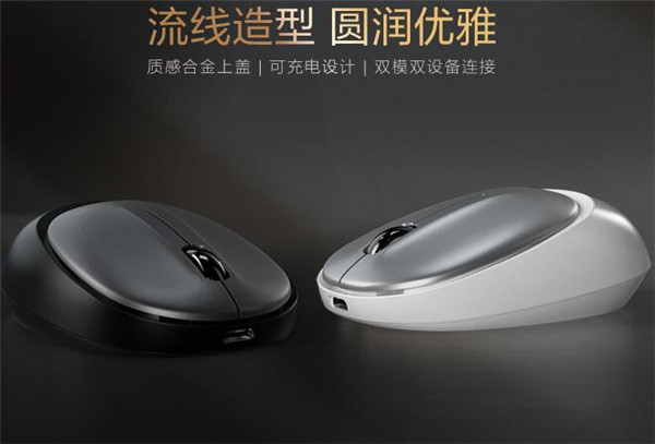 YOGA M5 无线双模鼠标由阳极金属喷砂工艺打造,采用贴合手部轮廓的圆润形状设计,提供暗黑和月白两种配色可选。