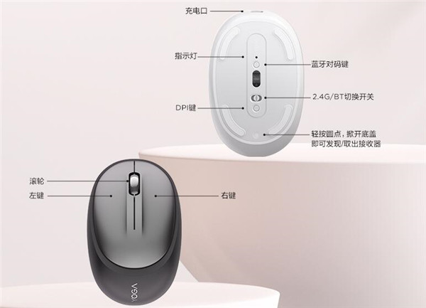 鼠标拥有隐藏式底部开盖设计,可存放无线接收器,一按开盖,磁吸防丢。尺寸为100.5×34mm,重65g。