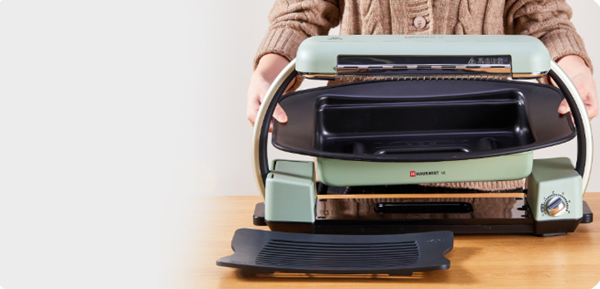 海氏V6无烟快烤炉采用的是三重无烟设计,它的发热源在食物的上方,直接避免了油脂残渣与发热源接触,二次加热的可能。烤盘采用的是镂空设计,可以将肉类析出的油脂引流到装着清水的托盘中。 所以烧烤过程中,全程无油烟,健康还安全,烧烤完也能一身清爽。