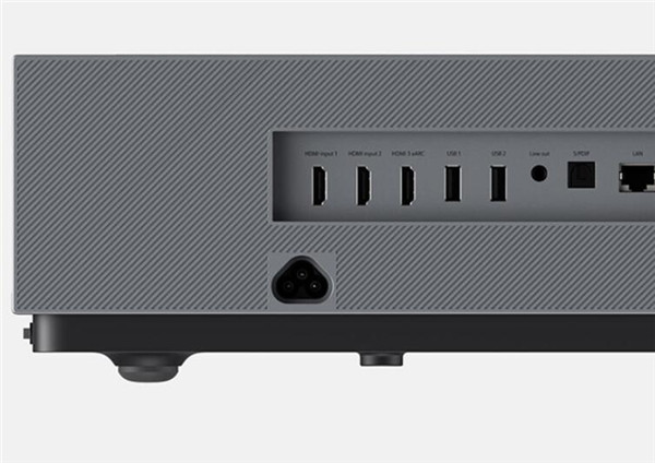 机身背部具备多个使用接口,其中包括3个HDMI 2.0,其中一路支持 HDMI eARC,3个USB 2.0、光纤接口、以太网口以及音频接口,接口数量众多且种类丰富,主流使用接口也都没有缺少,充分满足你的观影、连接、传输等使用需求。