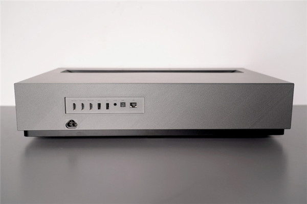 峰米全色激光电视T1采用极简的外观设计,四处直角边框平添一丝利落之感。黑灰配色,加之搭配的锖色喷砂机身工艺,整体看上去品质感科技感十足,也能够与现代家居审美相契合,放在客厅、卧室一角都十分合适。