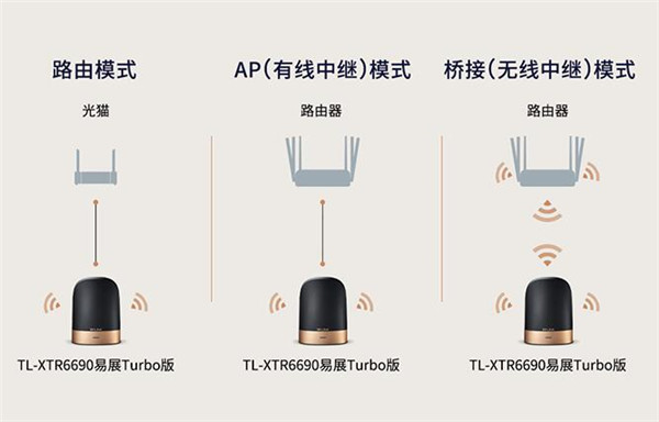 “易展2.0”技术,我们把“易展”MESH扩展 到6GHz频段6,同时支持无线/网线/光纤三介质互联,产品互联范围,除了家用路由,进一一步扩大到商用AP/AC和企业路由。并且“易展2.0”向下兼容“易展”,可与支持旧版“易展”产品互联,真正实现,新的产品更好用,老的产品还能用。