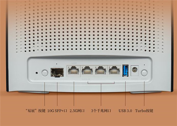 提供一个10G自定义口,采用SFP+插槽形式,搭配TP-LINK丰富的高性价比SFP+光/电模块资源,用户可根据自身需求,随时添加、灵活使用。WAN/LAN用途自定义,光纤/网线介质自定义,1G/2.5G/10G速率自 定义。自带2.5G网口,WAN/LAN可变,可用网线直接接入宽带或设备使用。另外提供3个千兆网口,和1个USB3.0口,方便接入更多网络设备、存储设备、USB硬盘等。