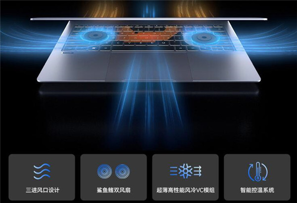 华为鲨鱼鳍双风扇,配合超薄高性能风冷VC模组,散热区域全覆盖,整机散热效率飙升,性能释放翻倍29。智能温控系统,随温度智能调节风扇转速,安静的散热体验,让你全神贯注地投入于工作中。