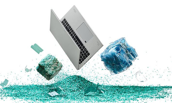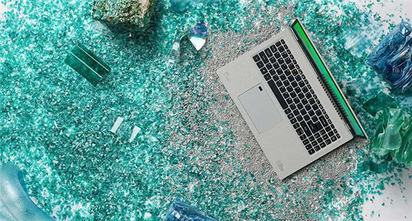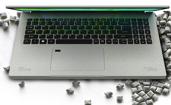 目前在笔记本整体材质的应用中,金属占据着主流的地位,甚至很多高端的产品还引入了镁合金、碳纤维等材料。而今天要介绍的宏碁蜂鸟·未来环保版采用的是PCR环保材质,即消费后的塑料,主要来源于我们日常消费后的日化,电器,汽车等二次回收提取的塑料。