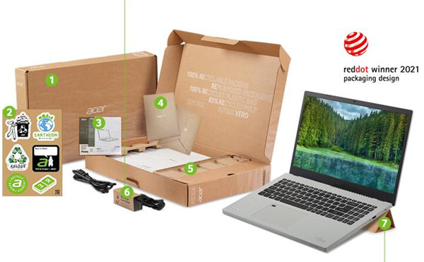 宏碁为产品加入了PCR环保标识,并且采用的也是冲压工艺,而非传统的贴纸,这样也可以减少纸张、塑料、粘合剂的使用,应该说是将环保理念真正融入了细节设计内。