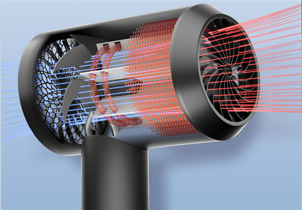 负离子发生器能够输出超 1000 万负离子,减少静电改善毛躁。50 次/s 的高频智能控温能够实时调整出风温度,避免头发过热受损。