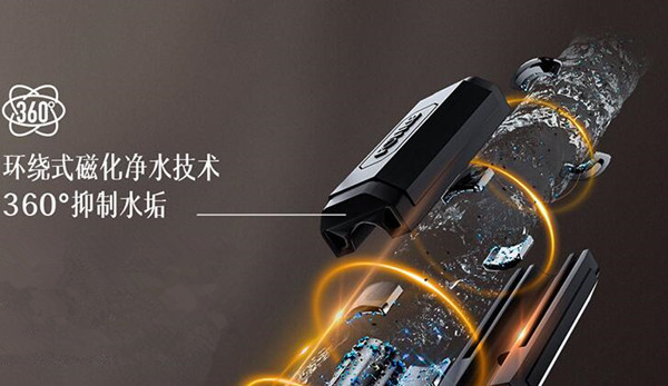 环绕式磁化净水技术,搭载独特环形结构,360°环绕式磁化,吸附面积更广,强磁场分离水中钙离子与碳酸根离子,有效抑制水垢生成,降低水硬度。