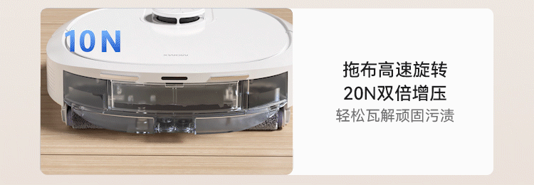 值得一提的是,机器人的运动系统由左右驱动轮、万向轮、履带式拖布组成。在清洁过程中,主机左右驱动轮及万向轮驱动机器人前进、后退、转向,保持平衡。而本次履带式拖布的设计不仅有效提升了清洁效果,更可以化身驱动,辅助机器人爬升越障,让机身全屋穿梭自由,同时满足客厅、卧室、厨房、浴室、阳台等场景清洁需求。