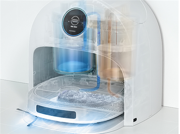 XWOW晓舞区别于市面其他扫地机器人的最大差异点是机身可“实时自动洗拖布,拖布时刻干净,才能拖得干净”。目前市面上的扫地机器人在拖布的清洁上都只能回基站清洗,机器人带着脏了的拖布回基站清洗,在回洗的过程中大部分消费者都没有意识到脏拖布已经对地面造成了二次污染。其次,在拖地的过程中遇到酱油、番茄酱、牛奶等液态脏污时,拖布一拖就脏。而目前市面上的扫地机器人回洗系统需要一个过程,这个过程中机器人其实一直在用脏拖布拖地。