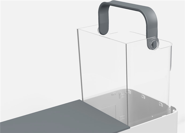 直饮机内部分别有可抽拉分离式的水箱和一体式集成滤芯。水箱采用大容量4L装,相比市面上2-3L要大不少。顶部的提拉式提手方便用户取放,自己也可以轻松换水。