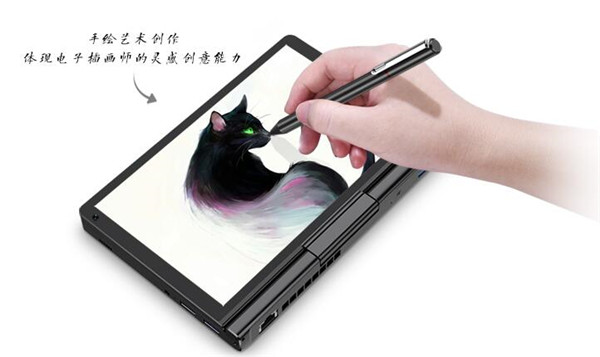 自主研发T字转轴,粉末冶金工艺制造,屏幕180°开合角度,Y轴可180°旋转,旋转反扣到键盘上,单手旋转不费力,角度随意控制,经100000次机械臂持续旋转、开合测试,完好率达99.3%。