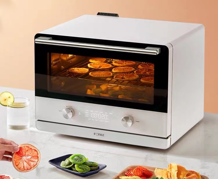 它的大名叫方太蒸烤烘炸一体机,功能上顾名思义,就是一台小方盒=蒸箱+烤箱+蒸烤箱+空气炸锅+烘干机,一体到不能再一体了,你会不会以为这么多功能的机子,一定很庞大。毕竟很多蒸烤箱都已经不小了。但实际上很小巧,而且完全不笨重。