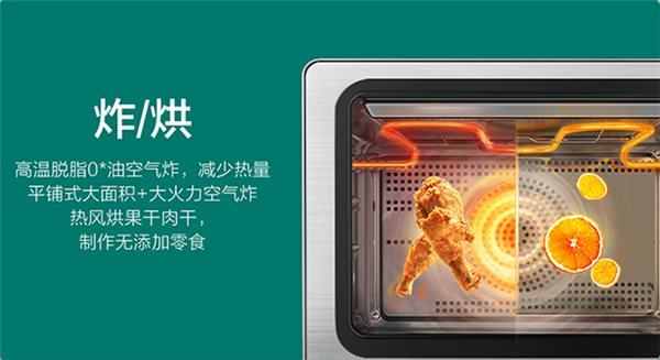 采用双转速风机,空气炸模式下转速可达2000转/分钟,巨大热量迅速带走水分,催出多余油脂,轻松制作低热量炸物;蔬果干模式一键烘制花果茶、肉干、小鱼干,清新下午茶,萌宠也开心。