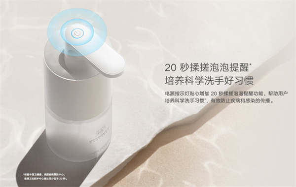 米家自动洗手机Pro在功能上的升级,较上一代电源指示灯贴心的增加了揉搓泡泡提醒,这也是对洗手这件小事的深度思考。根据中国卫健委、美国疾病防控中心、香港卫生防护中心至少洗手20秒的建议,米家自动洗手机Pro增加20秒揉搓泡泡的功能,帮助用户培养科学洗手的好习惯,通过充分的揉搓和洗护,也有效的防止疾病和感染源的传播。