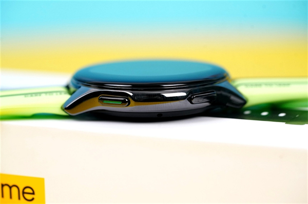 真我手表T1中框使用的是316L不锈钢材质,表身右侧配备了两枚按键。