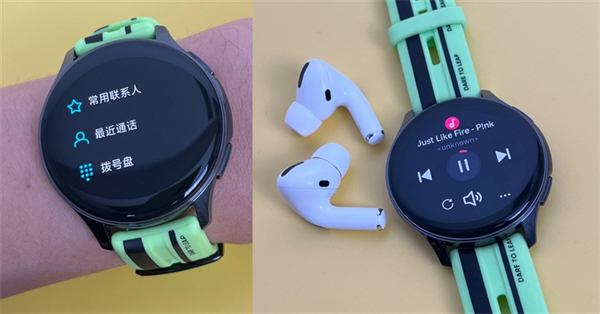 真我手表T1内置的Cypress通讯芯片,支持蓝牙通话和播放音乐,也使得其成为价位段首款支持蓝牙通话的智能手表。如果在运动时来电不想拿出手机,可直接通过手表来接听或挂断。