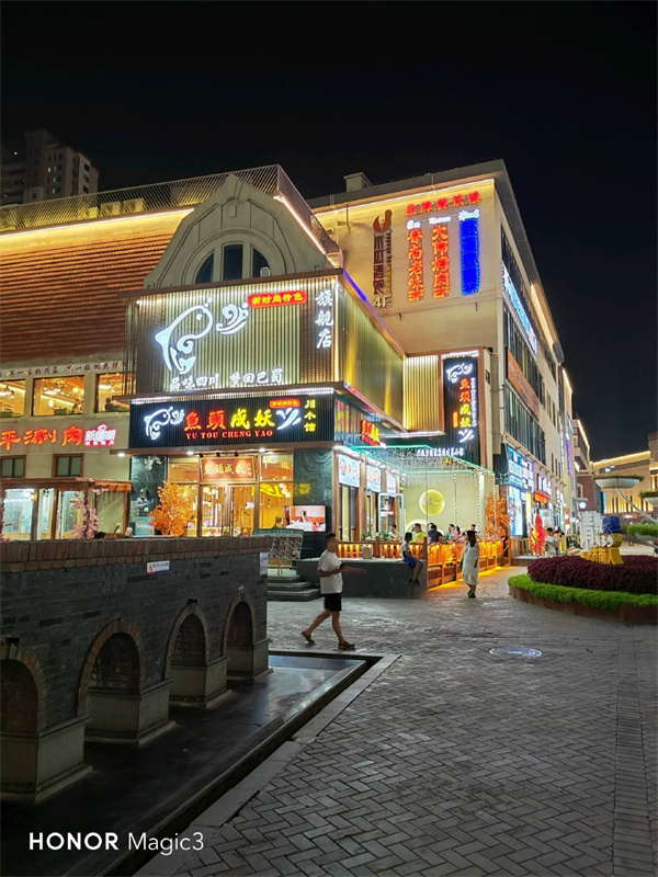 夜景拍摄方面,说实话荣耀Magic3的夜景调教尚还在持续优化中,相对于华为P50 Pro还是稍逊一筹。不过在同价位的机型中,夜景表现还是可圈可点的,色彩还原度高,高光压制到位,暗处细节清晰可见,整体成像也很讨喜,往往不用P图就可直接发往朋友圈。