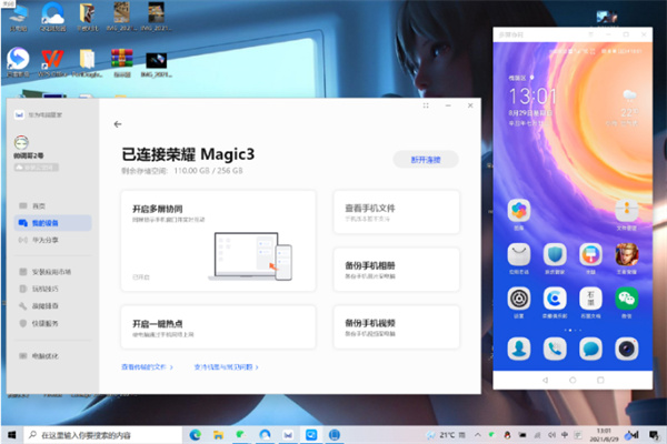 多屏协同方面,有不少朋友都在好奇,荣耀从华为独立之后,还能不能与华为平板和笔记本协同。于是科技君特意测试了一下,发现荣耀Magic3和华为的平板和笔记本,是可以进行多屏协同的,这样一来,就比较方便华为/荣耀设备的用户自由切换了。