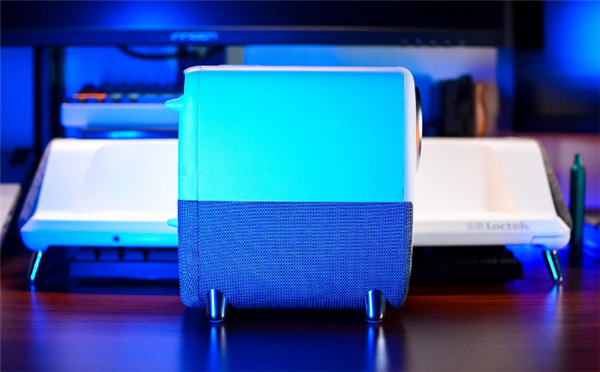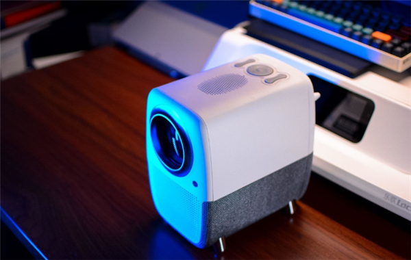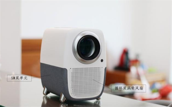 泰捷T1的风格,类似于复古的放映机+现代化音箱的设计,整体的色调是白色+灰色布艺的设计,简约又大气。客观来说,家用投影仪里面,泰捷T1的颜值真的是很高。