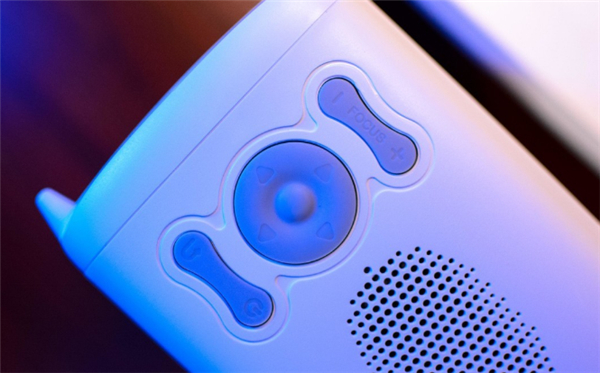 顶部的按键,右侧为焦距调节按键,中间为方向、确认按键;左侧为开关机、返回按键。即便是脱离遥控器,也可以进行日常的操作。