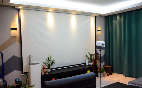 泰捷T1的重量1.88kg,可以轻松hold。专业的投影仪支架+专业的投影仪,泰捷T1和家里的环境特别搭配,再配合着专业的幕布,真的特别漂亮。当然,泰捷T1没有内置电池,本身定位就是家用投影仪,而并非便携式的投影仪。所以日常使用需要连接电源线;外出使用则需要使用户外电源。