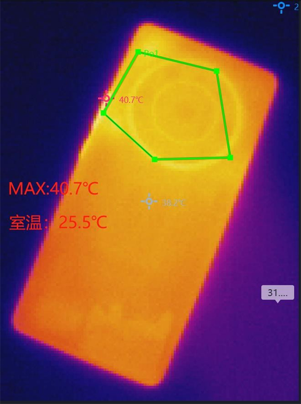 在连续高强度运行游戏一小时后,荣耀Magic3 Pro背面最高温度为40.7℃,温度控制比较理想。
