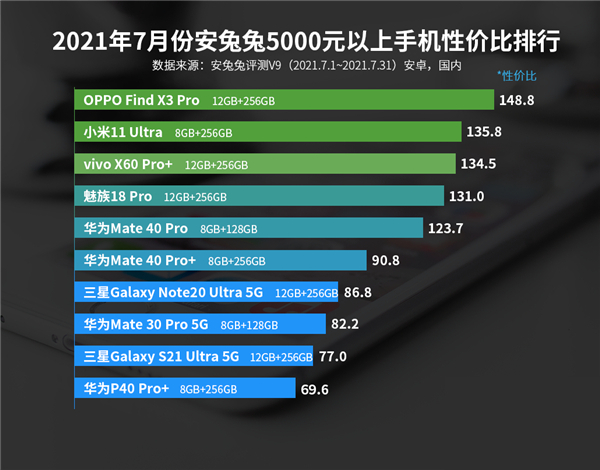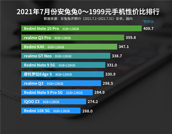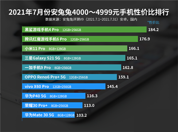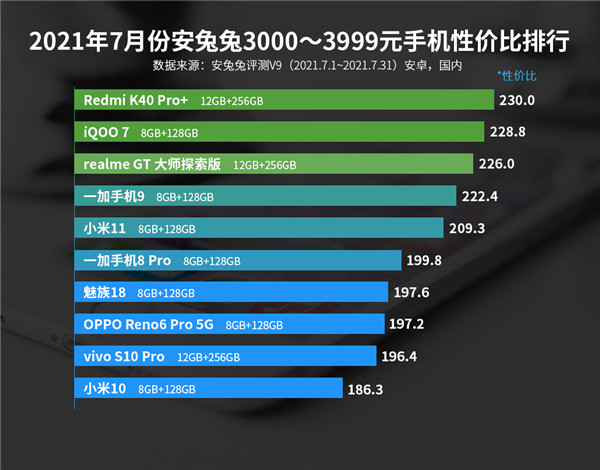 8月12日消息,安兔兔今日公布了7月Android手机性价比榜单出炉,共分为5个区间,覆盖了从入门机到顶级旗舰。