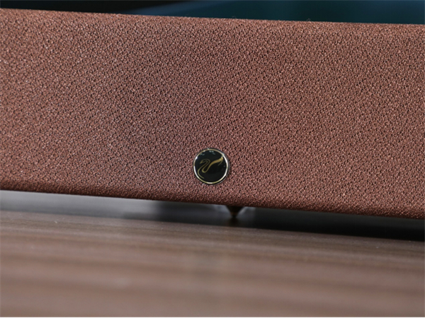 再者,回音壁正面的防尘网采用了咖色柔性材质,在抗冲击和拉扯方面表现更优秀,防尘网使用磁吸的方式进行安装,安装简单,好上手,在后期大扫除的时候,能够更加方便我们的打理和清洗。