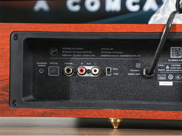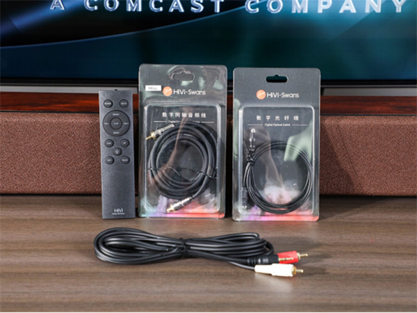 不仅如此,在音箱的包装内,惠威M200-Bar还提供了一个多功能红外遥控器,一根同轴连接线,一根光线连接线和一根AXU连接线,这点必须好评,用户不需要单独去购买线材,拿到之后直接使用就可以了。