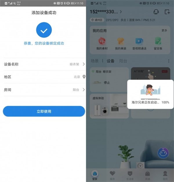 如果家中接入了海尔旗下的三翼鸟阳台晾晒场景,购买了海尔的其他家电产品,还可以与其他家电进行智慧物联。比如在洗衣机洗好衣服后,晾衣机便会主动降杆,准备晾晒。更有许多设置玩法,可以等我们自己开发。
