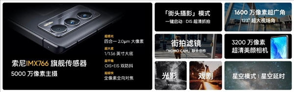 影像也是真我GT大师系列的重头戏,前置3200万像素索尼传感器自拍镜头,后置矩阵式三摄,️主摄采用与索尼联合研发IMX766传感器,5000万超高像素,1/1.56 英寸大底,进光量大幅提升,支持 OIS 光学防抖,全像素全向对焦,硬件级堆栈式DOL-HDR,画质更清晰。