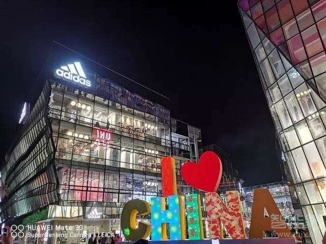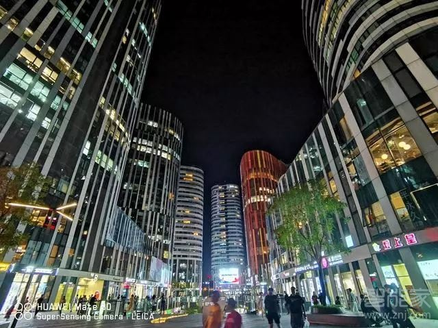 在夜景模式下,手机会自动进行4秒的长曝光,然后利用软件多帧合成技术进行降噪合成处理,令人称奇的是即使有路人来回走动和轻微的手抖,拍出的夜景照片依旧是相当清晰。特别是在光比较大灯火通明的商业区,华为mate30的照片成片率非常的高,天空黑的非常彻底,而远处的LED广告牌虽然很亮但是却能看清内容,两侧高楼上的灯光细节也都尽收眼底,绝对是一副实力之作。