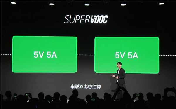 至于其中的技术原理,OPPO也做了详解。oppor17pro的Super VOOC采用串联双电芯设计,每颗电芯的容量是 1850 毫安(等效于 3700mAh 电池),串联双电芯可以将 10V 的输出电压进行分压,这样也就保证了每颗电芯上承担的电压只是一半,即 5V,所以在安全性上和 VOOC 闪充一样有保障。