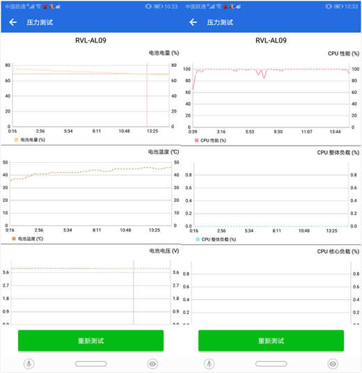 我们使用安兔兔进行了一次压力测试,荣耀Note10的电量在进行了大约14分钟的CPU最高频的测试后从79%掉到了67%,在高压力下仅损耗了12%,换算到日常使用的话会有更优秀的续航。
