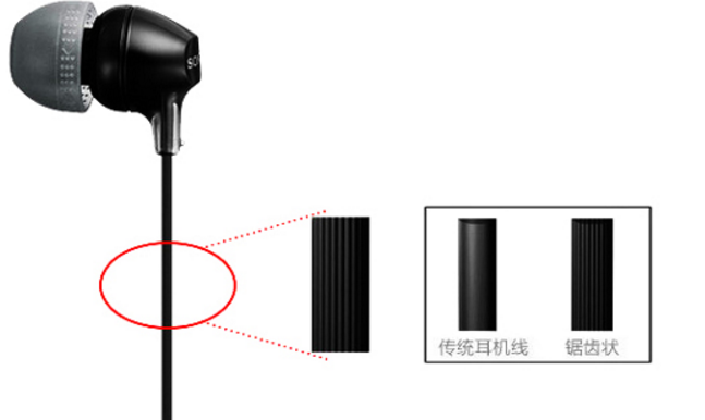 耳机线表面的沟壑设计可以降低摩擦,减少缠绕,方便整理。