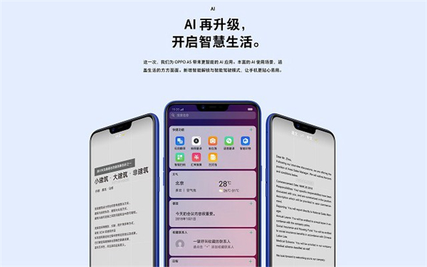 OPPO A5运行的是基于 Android 8.1 开发的 ColorOS 5.1,界面走的是简约不臃肿路线,日常使用具备不错的流畅度。内置语音助手,AI应用等,另外预装APP比较少,系统中没有广告,这点值得点赞。