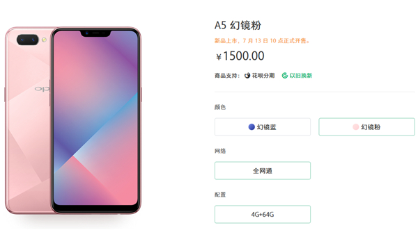 oppoa5多少钱?从官网上架的信息来看,oppoa5售价是1500元,如图: