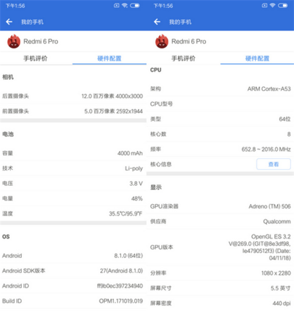 与低功耗的高通骁龙625相配的是一块4000mAh超大容量电池,这对于相对轻量级的红米6 Pro来说相当难得。我在使用一整天后,剩余37%的电量依旧令人安心,更何况这是建立在运行一个多小时《王者荣耀》的基础上。对于普通用户来说,尽情用一整天绝对无压力,保不齐中度用户能撑两天嘞。