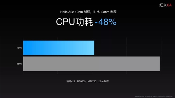 官方号称,它的性能对比MT6739提升33%,对比骁龙425也高出37%,同时得益于12nm新工艺,CPU功耗对比28nm工艺降低了48%。