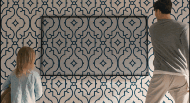 另一个是三星2018年新款QLED液晶电视,它的绝活儿是光天化日之下消失在墙壁上。