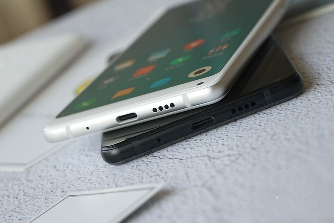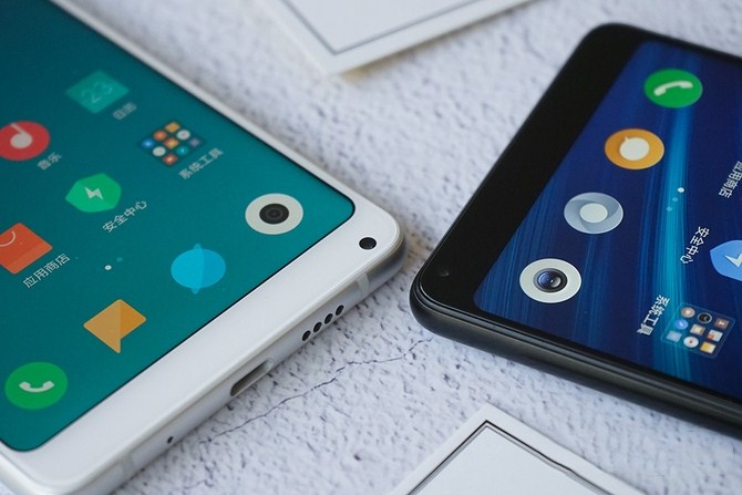 两款手机前置摄像头均设计在机身右下方,默认情况下需要一定倾斜才能自拍,不过经过实测发现这并不影响MIX2s的人脸解锁。机身顶部仍然是隐藏听筒设计,两侧隐藏了超声波距离传感器,这些都是对上一代MIX 2产品设计的直接继承。