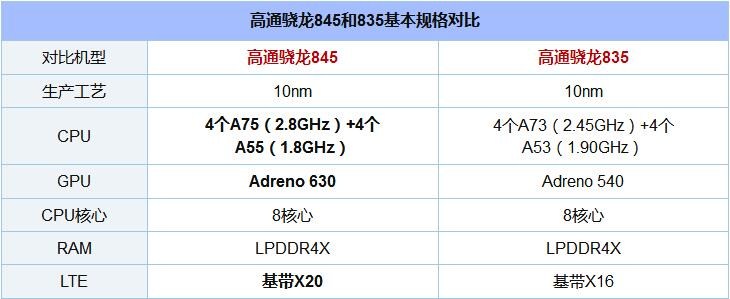 首先,我们先来了解一下骁龙845和835对比基本参数情况,初步了解一下这两款芯片之间的差异性。