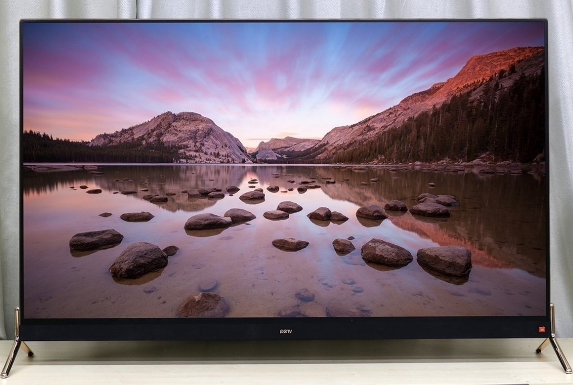 小米电视4 55英寸机身同样采用4.9mm超薄设计,机身采用双色阳极氧化铝合金材质,中框和屏幕融合一体,背板采用高阶曲面造型。产品机身设计最为困难的是屏幕与背板的结合,在这方面小米采用了玻璃导光板与金属背壳相结合的设计。