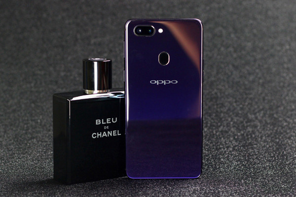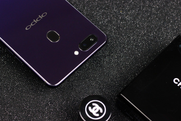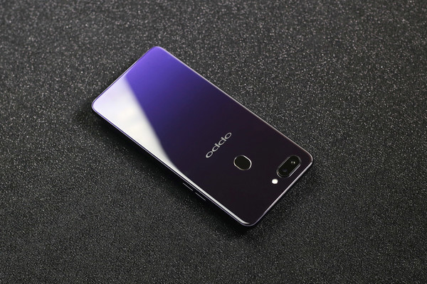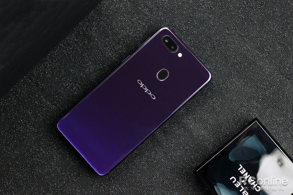 在星空紫机身的衬托下,背部设计则依旧是OPPO机型家族式的设计风格,左上角为双摄相机搭配补光灯。机身中间标志性的腰圆型指纹识别模块,反光配色的OPPO标志,与勾勒元件边缘的高光线条相互映衬,细节处理透露出低调中的一丝躁动。