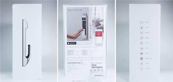 包装与外观多灵 P8 的包装风格一点都不像是一个门锁,更像是一个数码产品的包装,纯白的配色与 iPhone 有那么几分相似。