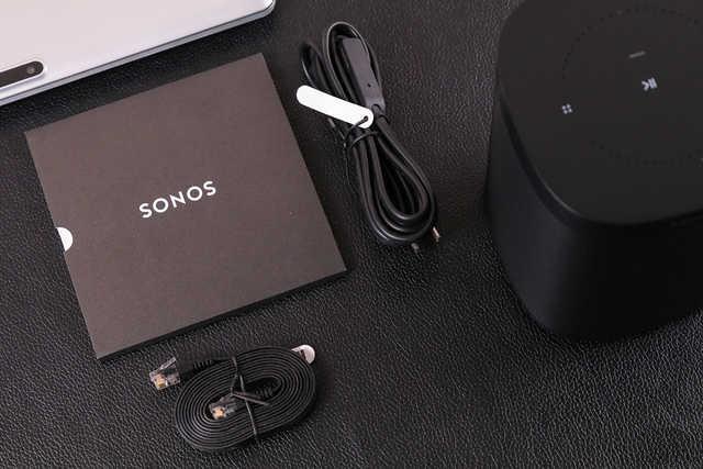 打开SONOS ONE的包装,我们可以发现除了SONOS ONE音箱本体,以及必须的一系列纸质文件之外,包装内还有一根电源线和一根网线。