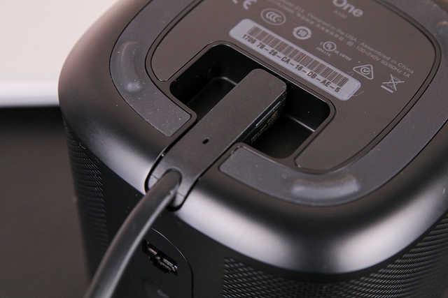 而️在SONOS ONE的下部,则是嵌入式的电源接口。这样的电源接口能够很好地隐藏线缆,让SONOS ONE维持简约的“性冷淡”范儿,看起来干净利落。