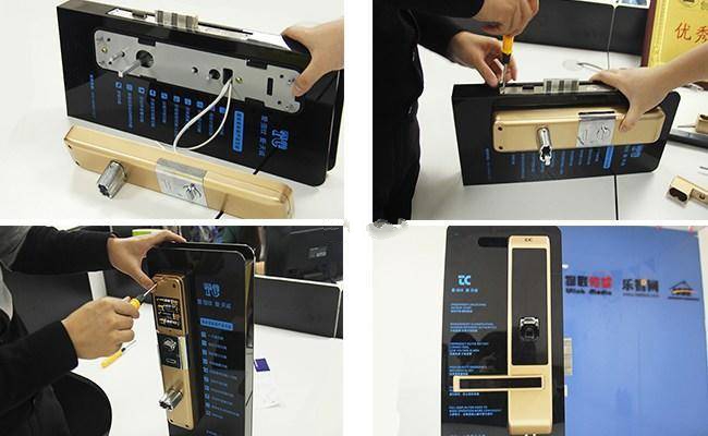 安装过程很简单,只需对好锁孔,组装连线即可。