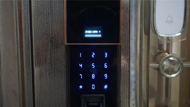 再往上推的话就是密码触摸区域,直接输入预设密码(支持4-8位)后按#就可以开锁。